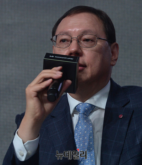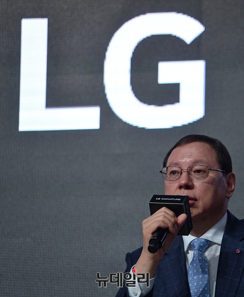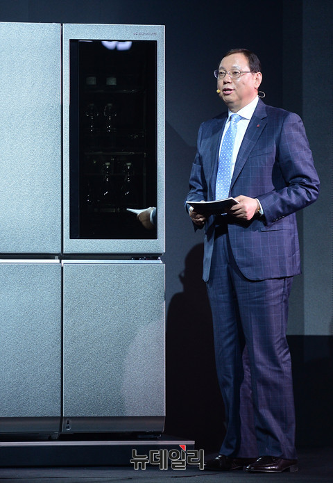 LG전자가 28일 오전 서울 양재동 LG전자 서초R&D캠퍼스에서 프리미엄 가전 통합 브랜드 'LG 시그니처(LG SIGNATURE)' 발표회를 갖고, 국내 출시를 알렸다. LG전자 조성진 대표이사가 시그니처를 소개하고 있다.