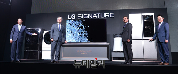 이날 공개된 LG 시그니처는 올레드 TV, 시그니처 냉장고, 시그니처 세탁기, 시그니처 가습공기청정기 등 총 4종으로 구성됐다.