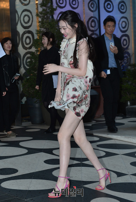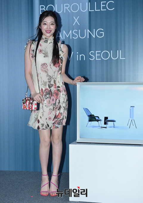 이날 행사에 참석한 설리가 포토타임을 갖고 있다.