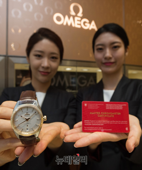 시계브랜드 오메가가 30일 오전 오메가 청담 플래그십 스토어에서 세계 최초로 '마스터 크로노미터(Master Chornometer)' 인증을 받은 '글로브마스터(Globemaster)' 컬렉션을 공개했다. 오메가는 청담플래그십 스토어 3층에서 4월 말까지 글로브마스터 전시회를 진행할 예정이다.
