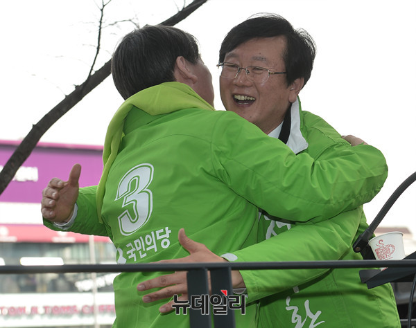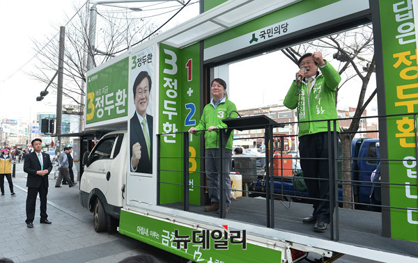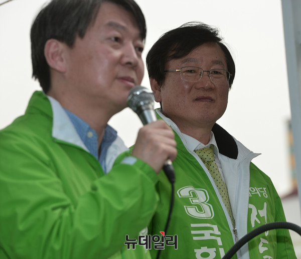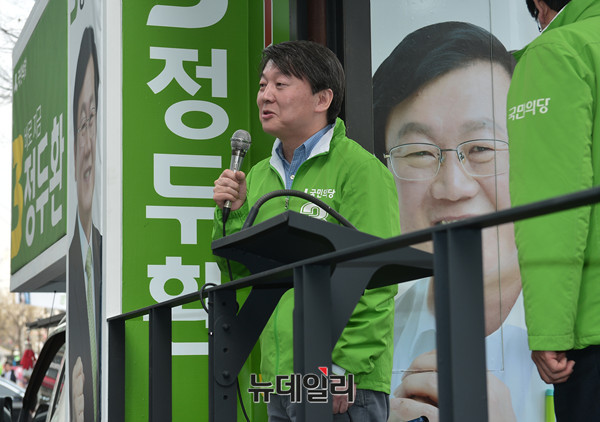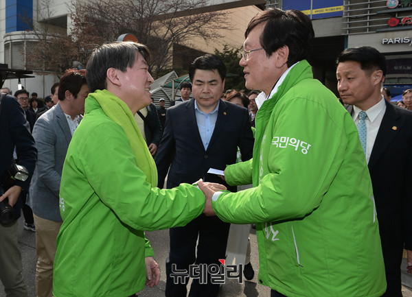 국민의당 안철수 공동대표가 4.13총선 공식 선거 활동 일인 31일 오후 서울 금천구 홈플러스 금천점 앞에서 금천구에 출마하는 정두환 후보의 지원 유세에 나섰다.