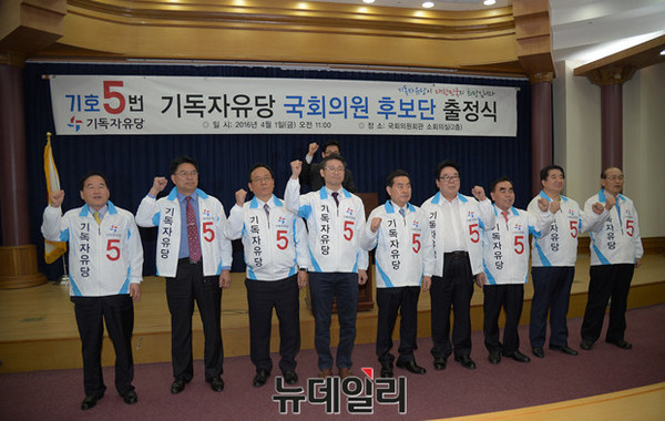 기독자유당 국회의원 후보단 출정식이 1일 오전 서울 여의도 국회의원회관 소회의실에서 개최됐다.