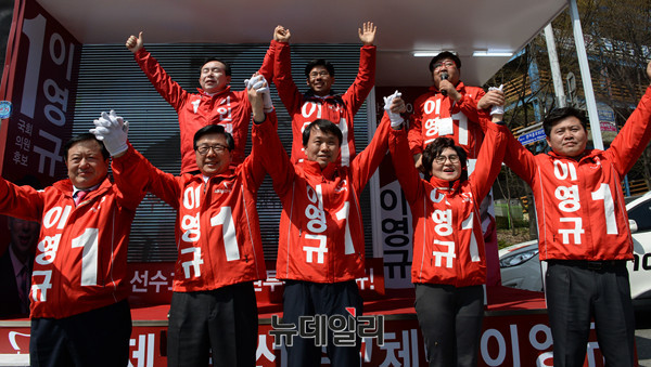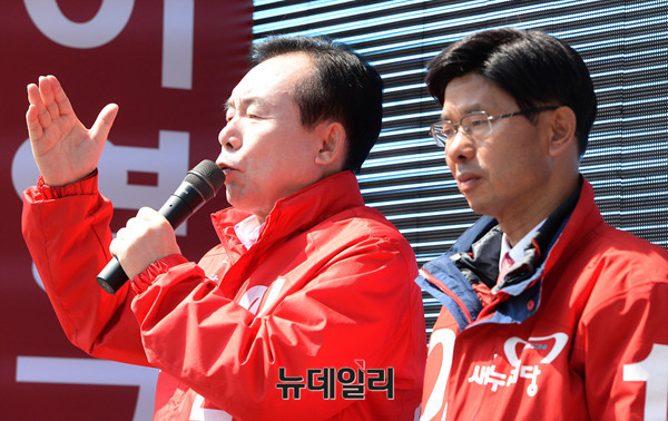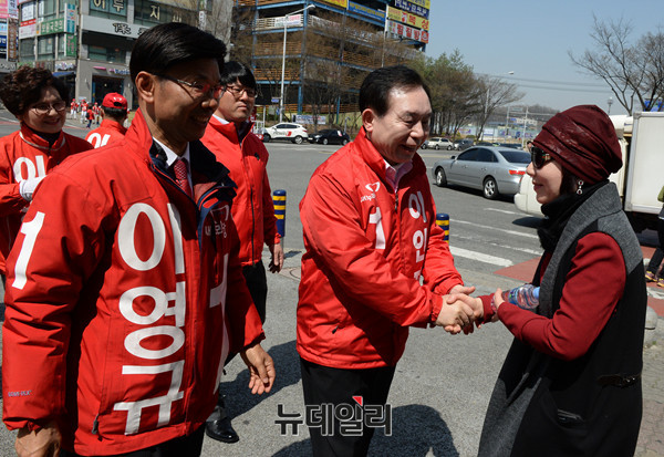 새누리당 중앙선거대책위원회 이인제 공동위원장이 1일 오전 대전 서구 관저동을 찾아 서구 갑 이영규 후보의 지원 유세에 나섰다.