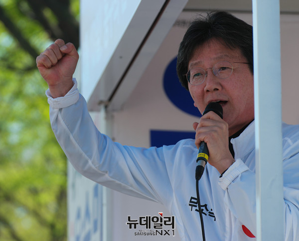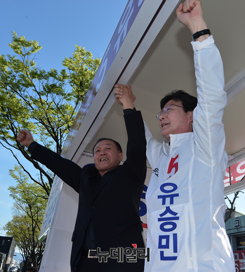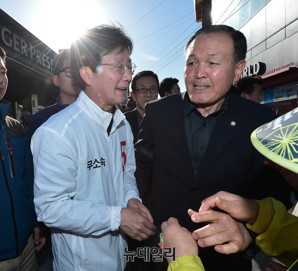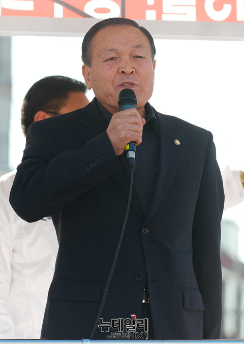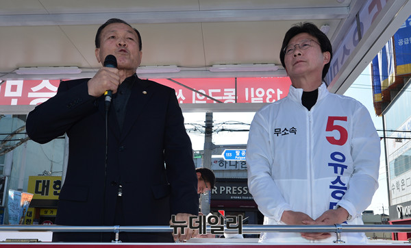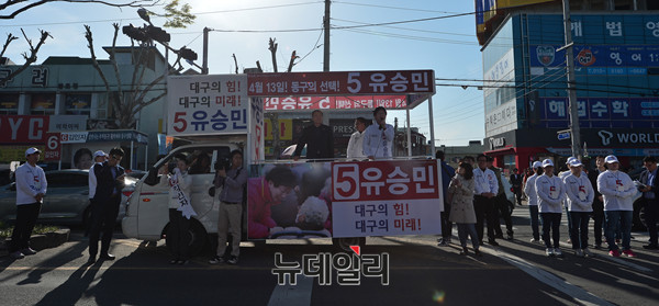 서훈 전 국회의원이 5일 오후 대구 동구 불로시장 앞에서 진행된 무소속 유승민 후보의 유세에 나서 유 후보를 지지했다. 유승민 후보가 나선 대구 동구 을 지역구는 새누리당에서 후보를 내지 않아 더불어민주당 이승천 후보와 경쟁을 펼치고 있다. (대구=뉴데일리 정상윤 기자)