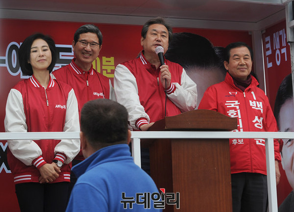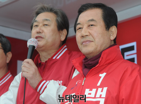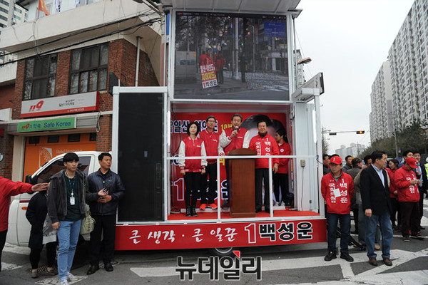 • 새누리당 김무성 대표가 8일 오후 경기 고양시 일산서구 일산시장 입구에서 백성운(고양병)후보 지원유세에서 지지를 호소하고 있다.