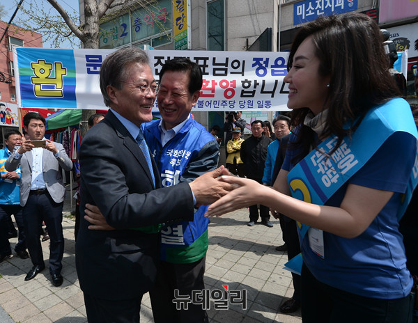 4.13 총선에서 정읍,고창 선거구에 출마한 더불어민주당 하정열 후보가 9일 오후 정읍시 남북로에서 유세를 이어갔다. 이날 유세장에는 더불어민주당 문재인 전 대표와 김홍걸 국민통합위원장이 방문했다. 하 후보의 딸인 미스코리아 출신 하경민 씨도 유세장에서 아버지를 도왔다.