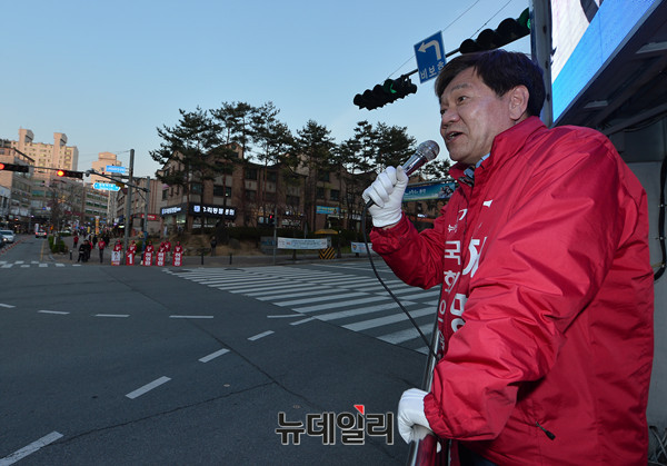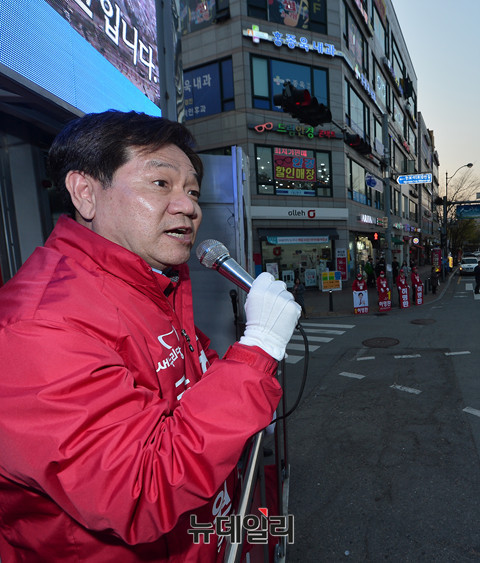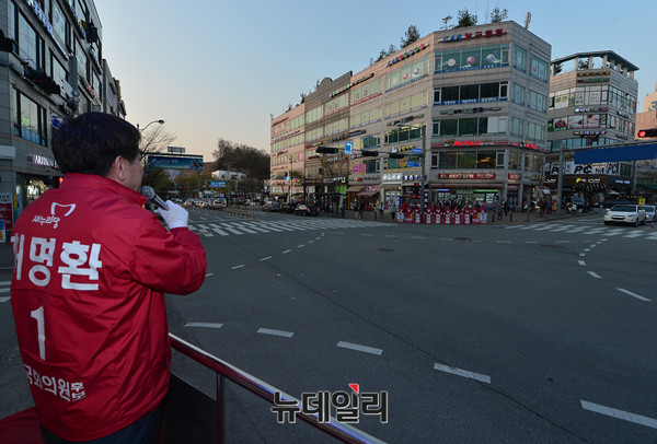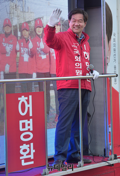 4.13 총선에서 경기 용인시 을에 출마한 새누리당 허명환 후보가 11일 오후 용인시 기흥구 스카이프라자 앞 사거리에서 유세를 이어갔다.