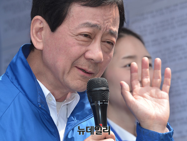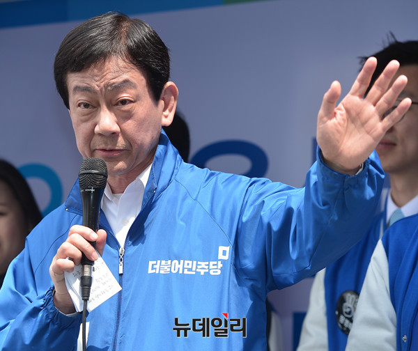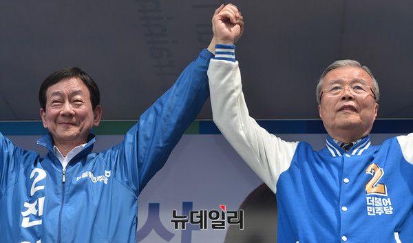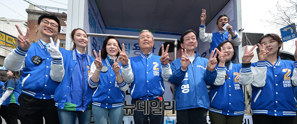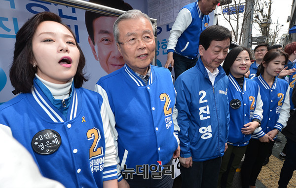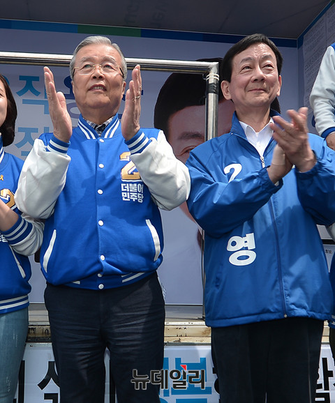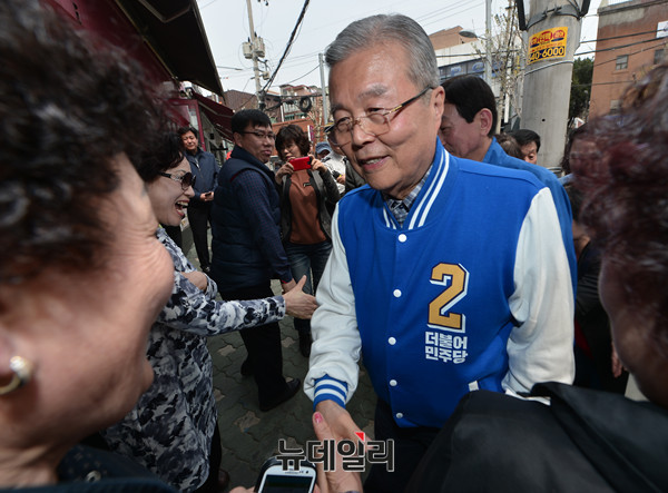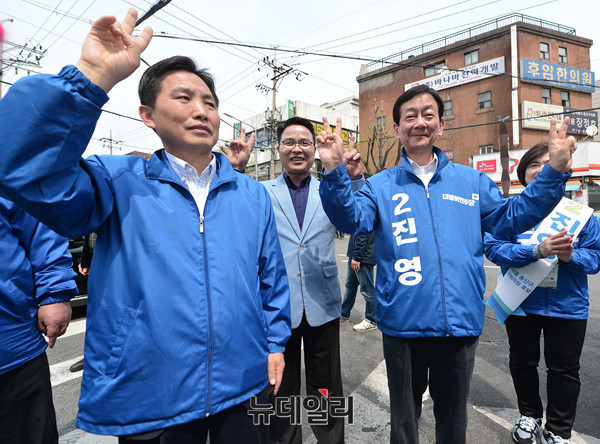 4.13 총선을 하루앞둔 12일 오후 서울 용산구 후암시장입구에서 더불어민주당 진영 후보가 선거 유세를 이어갔다. 이날 유세에서 진 후보는 "당선이 되더라도 새누리당에 재입당 하는 일은 없을 것"이라고 일축했다. 더불어민주당 김종인 대표도 이날 유세장을 방문해 진 후보를 지지해 줄것을 당부했다.