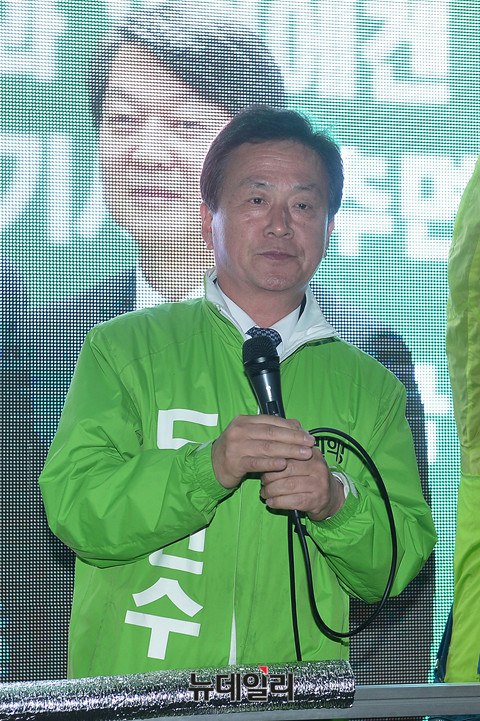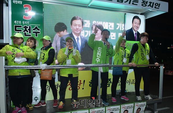 4.13 총선에서 서울 성북구 갑에 출마한 국민의당 도천수 후보가 12일 오후 서울 성북구 길음역에서 막바지 선거 유세를 하고 있다.