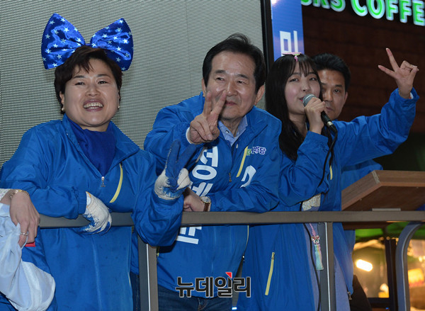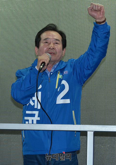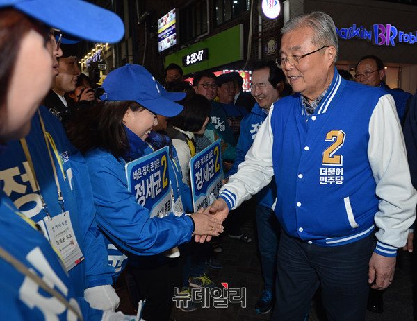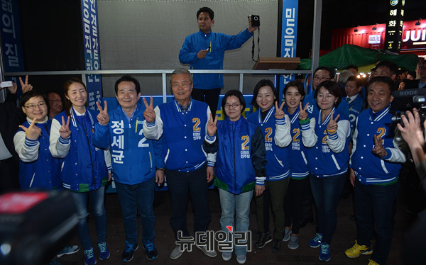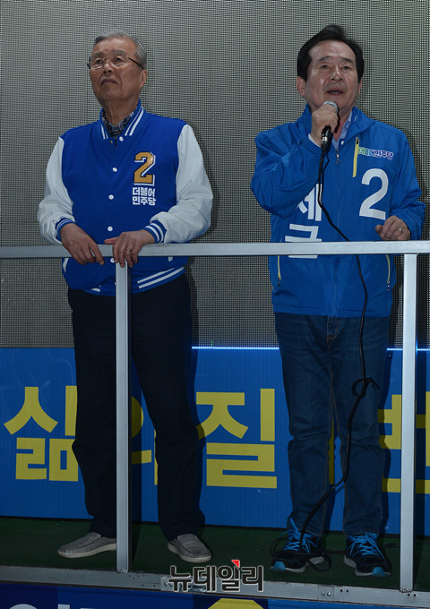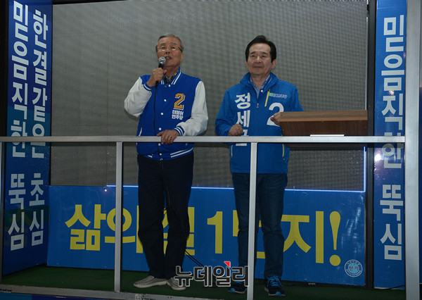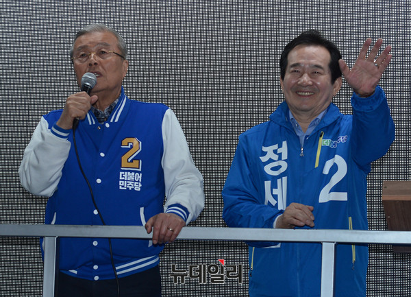 이날 유세에서 김 대표는 "현 정부의 경제 실패를 비판"하며 "정 후보를 지지해 줄것"을 호소했다. 유세장에는 "정세균 대통령"이라는 구호도 간간히 나왔다.