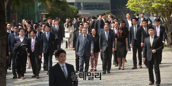 이날 현대차그룹과 애경그룹의 결혼식에는 정몽구 현대차그룹 회장, 현정은 현대그룹 회장, 정의선 현대차그룹 부회장, 정몽준 아산재단 이사장, 노현정 전 아나운서 등 범 현대가와 재계인사들이 총출동했다.