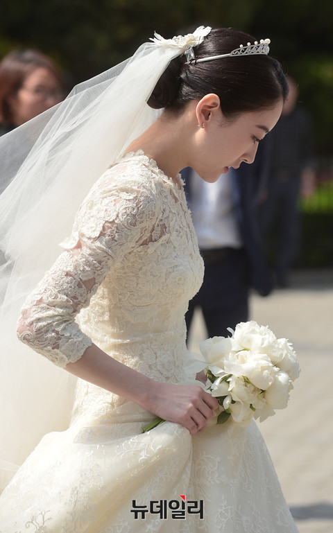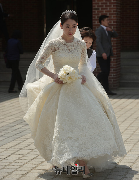 정몽구 현대차그룹 회장의 외손자 선동욱 씨와 채형석 애경그룹 총괄부회장 차녀 채수연 씨의 결혼식이 15일 오후 1시 서울 명동성당에서 진행됐다. 신부 채수연씨가 식장으로 입장하고 있다.