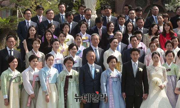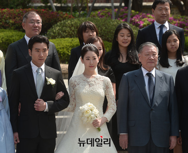 이날 현대차그룹과 애경그룹의 결혼식에는 정몽구 현대차그룹 회장, 현정은 현대그룹 회장, 정의선 현대차그룹 부회장, 정몽준 아산재단 이사장, 노현정 전 아나운서 등 범 현대가와 재계인사들이 총출동했다.