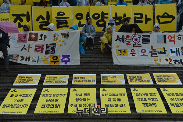 세월호 2주기인 16일 오후 7시부터 서울 광화문광장에서 '세월호 문화제'가 진행되고 있다. 강풍을 동반한 비가 내린 가운데 진행된 이날 문화제에는 김영오 씨를 비롯한 유족과 더불어민주당 도종환, 표창원, 김현권 당선자, 이재명 성남시장 등 추모자들이 참석했다.