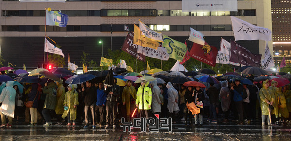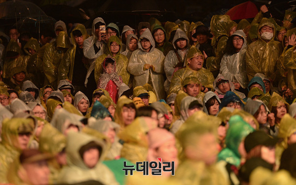 세월호 2주기인 16일 오후 7시부터 서울 광화문광장에서 '세월호 문화제'가 진행되고 있다. 강풍을 동반한 비가 내린 가운데 진행된 이날 문화제에는 김영오 씨를 비롯한 유족과 더불어민주당 도종환, 표창원, 김현권 당선자, 이재명 성남시장 등 추모자들이 참석했다.