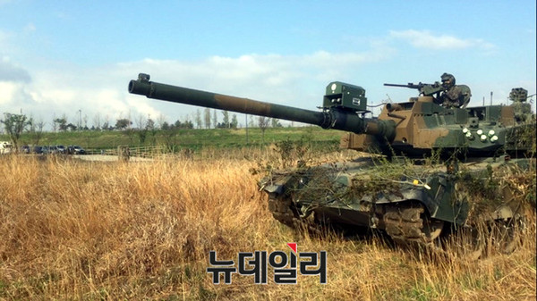 - ▲ 19일 K-2 흑표전차가 사격을 위해 이동하고 있다.ⓒ뉴데일리 순정우 기자