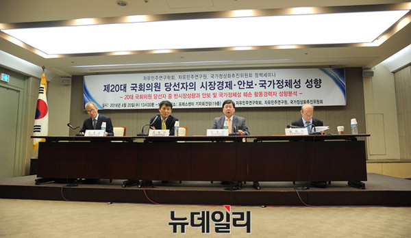 자유민주연구학회, 자유민주연구원, 국가정상화추진위원회가 주관한 '제20대 국회의원 당선자의 시장경제·안보·국가 정체성 성향 분석 세미나'가 20일 오후 서울 중구 한국 프레스센터에서 열렸다.