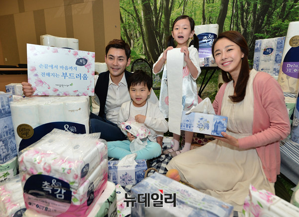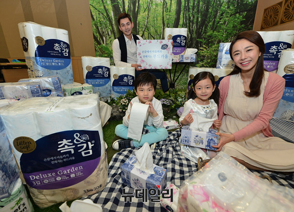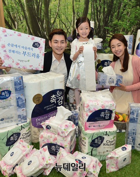 깨끗한나라가 27일 오전 세종문화회관 예인홀에서 프리미엄 화장지 '촉앤감' 미용티슈와 물티슈 출시를 알리는 행사를 진행했다.