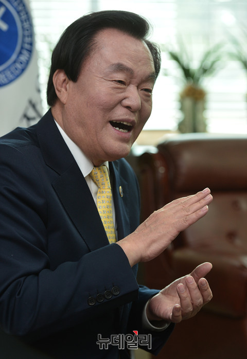 한국자유총연맹 김경재 제16대 중앙회장과 인터뷰가 20일 오전 서울 중구 한국자유총연맹에서 진행됐다.