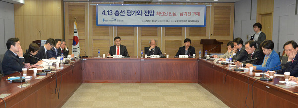 이 자리에서 더민주 우상호 의원은 "더불어민주당은 중도 외연 확장 전략을 계속해야 한다"며 "이번 총선은 승리이자 패배다. 원내 1당으로 자리매김했지만, 호남에서는 완패해 지지기반을 잃었다"고 자평했다.