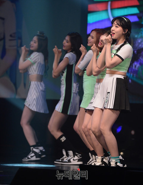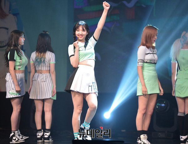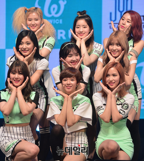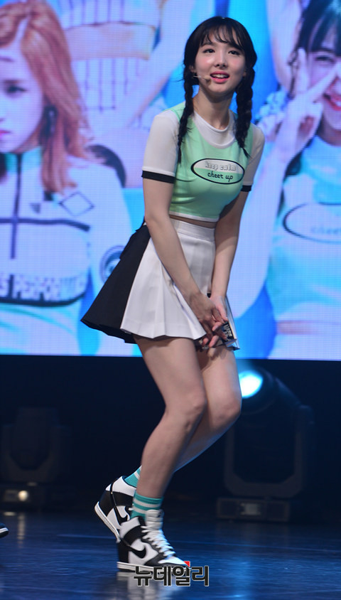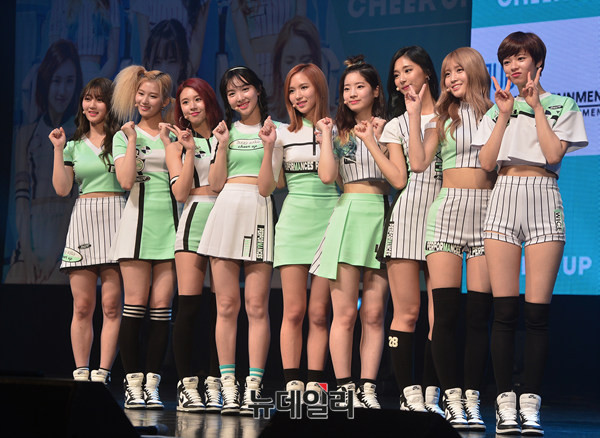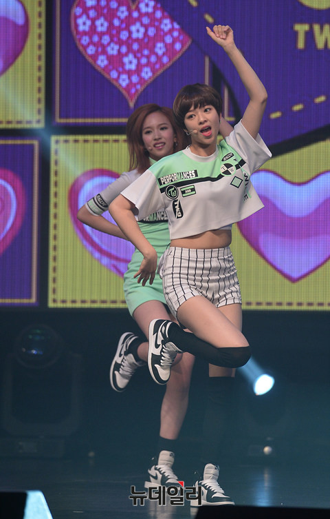 걸그룹 '트와이스(TWICE:나연, 정연, 모모, 사나, 지효, 미나, 다현, 채영, 쯔위)'가 25일 오후 서울 광진구 YES24 라이브홀에서 2번째 미니앨범 'PAGE TWO' 쇼케이스를 가지고, 6개월 만에 컴백을 알렸다. 트와이스가 컴백 쇼케이스 무대를 선보이고 있다.