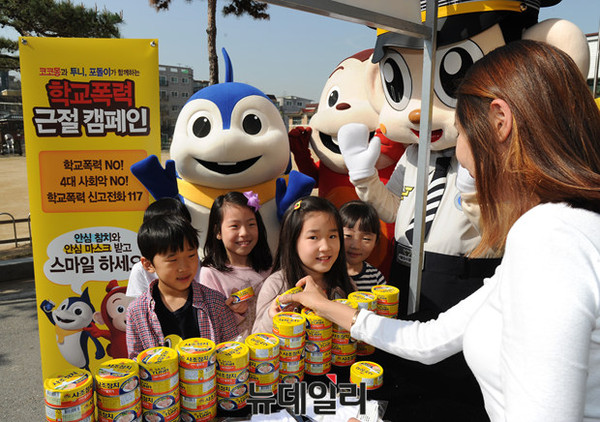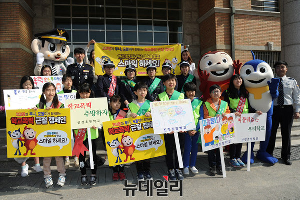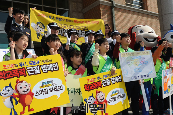 강서경찰서, 올리브스튜디오가 학교폭력 근절 캠페인의 일환으로 진행한 이날 행사에는 인기 애니메니션 '코코몽' 캐릭터와 경찰 마스코트 '포돌이'가 신정초등학교 재학생들과 함께 캠페인에 참여했다.