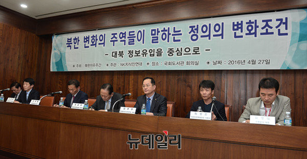 - ▲ NK지식인연대는 27일 국회도서관 소회의실에 제13회 북한자유주간을 맞아 '북한 변화의 주역들이 말하는 정의의 변화조건'이라는 주제로 토론회를 개최했다. ⓒ뉴데일리 정상윤 기자