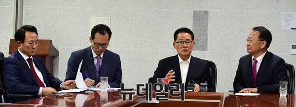 유일호 경제부총리겸 기획재정부 장관이 29일 오전 서울 여의도 국회의원회관에서 국민의당 박지원 원내대표를 예방하고 경제활성화법 및 쟁점법안 처리를 촉구 했다.