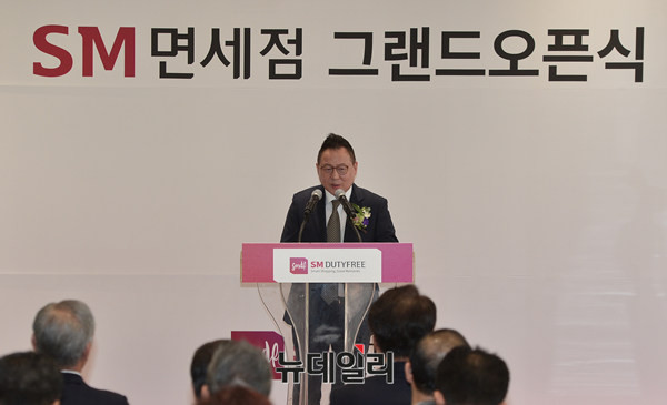 권희석 SM면세점 대표이사가 기념식에 참석해 발언하고 있다. 권 대표는 오픈식 후 면세점 층별 투어를 이어갔다.