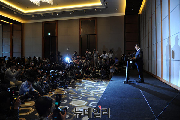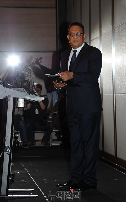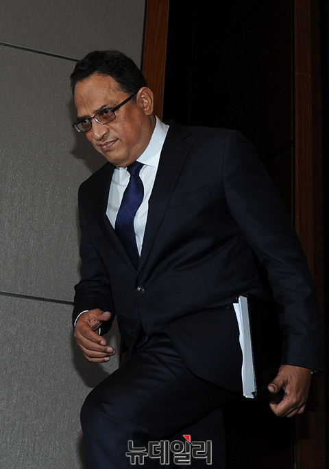 옥시레킷벤키저 한국법인 아타 샤프달 대표가 2일 오전 서울 영등포구 여의도 콘래드 호텔에서 열린 가습기 살균제 관련 첫 기자회견을 위해 입장하고 있다.