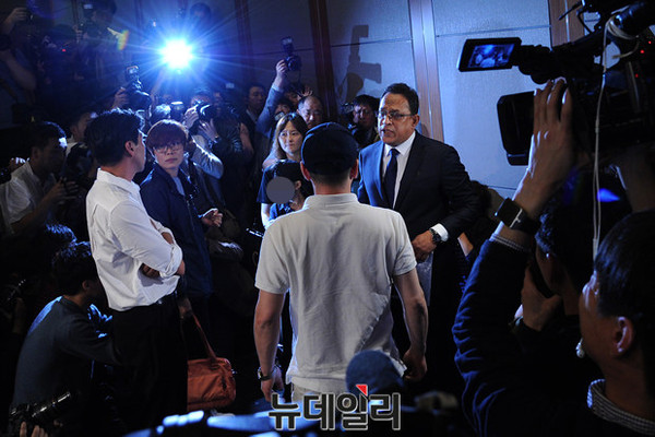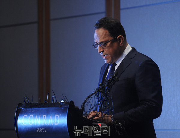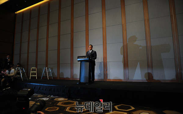 옥시레킷벤키저 한국법인 아타 샤프달 대표가 2일 오전 서울 영등포구 여의도 콘래드 호텔에서 열린 가습기 살균제 관련 첫 기자회견에서 공식 입장을 발표하고 있다.