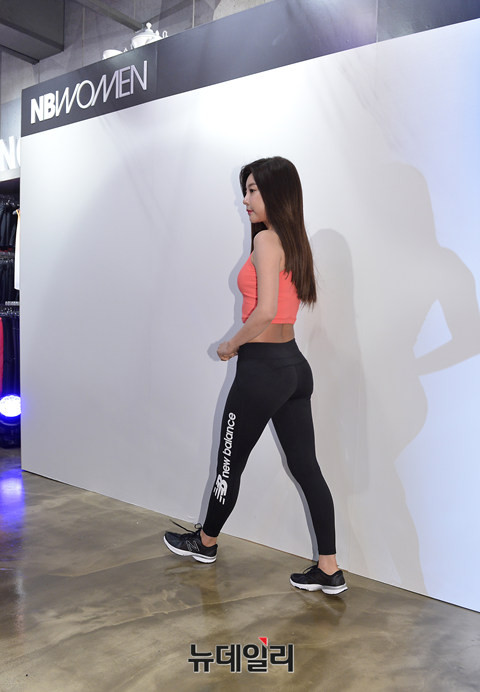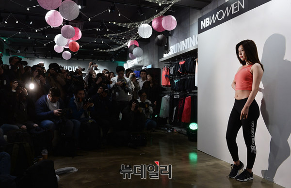 스포츠브랜드 뉴발란스(NEW BALANCE)가 3일 오후 서울 강남 플래그십 스토어 오픈을 맞아 2016년 S/S 우먼스 라인을 선보였다. 걸스데이 소진이 포토타임을 갖고 있다.