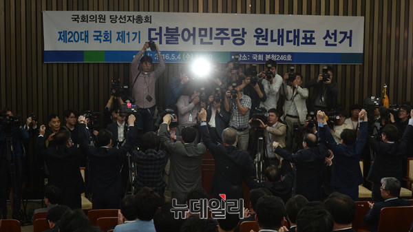 더불어민주당 원내대표 경선이 4일 오후 국회에서 진행되고 있다. 신임원내 대표 후보에는 더불어민주당 이상민, 강창일, 우상호, 노웅래, 민병두, 우원식 의원(기호 순)이 이름을 올렸다.