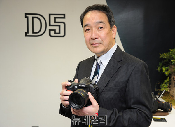 니콘이미징코리아 키타바타 히데유키 사장이 4일 오전 서울 강남구 삼성동 코엑스에서 열린 '서울 국제 사진영상 기자재전'에서 니콘이미징코리아가 출시한 신제품을 선보이고 있다.
