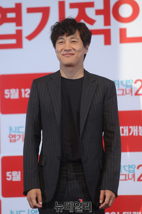 배우 차태현이 4일 오후 서울 광진구 롯데시네마 건대입구에서 열린 영화 '엽기적인 그녀2' 언론시사회에서 환한 미소로 포토타임을 갖고 있다.