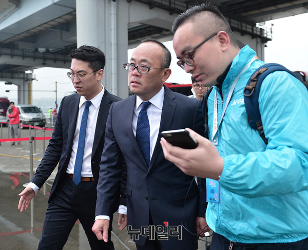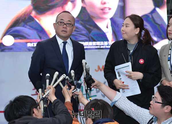 황금연휴 둘째 날인 6일 오후 서울 반포한강공원에서 중국 중마이 과기발전유한공사 소속 포상관광단 4,000명이 삼계탕 만찬을 비롯해 한국 전통놀이와 음식 체험 등을 즐기기 위해 찾았다. 만찬 전 중마이그룹 리다빙 총재가 참석해 소감을 밝히고 있다.
