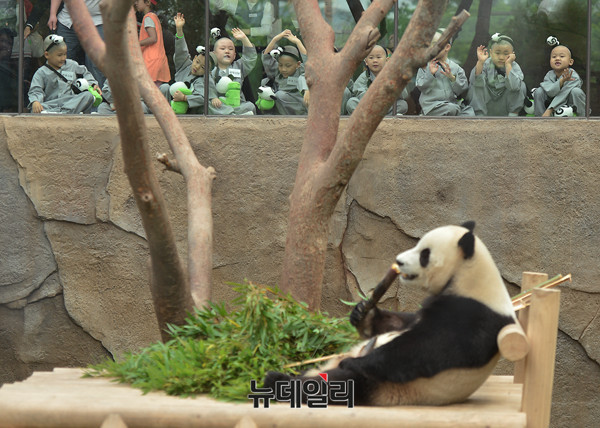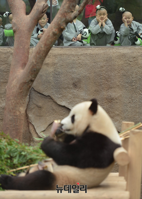 조계사 동자승 10명이 9일 오전 에버랜드를 방문해 최근 오픈한 판다월드와 어린이용 놀이기구를 체험하는 시간을 가지고 있다.