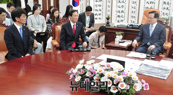 [포토] 정의화 국회의장 만난 더불어민주당 우상호 신임 원내대표