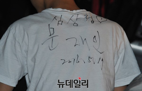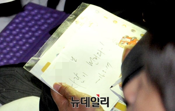 문재인 더불어민주당 전 당대표가 17일 오후 광주 금남로 일원에서 열린 제 36주년 '5.18 기념식' 전야제 행사에서 한 학생에게 싸인을 해주고 있다.