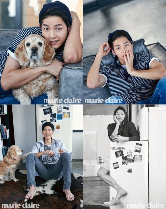 배우 송중기가 영화 '군함도' 촬영을 앞두고 소감을 전했다.드라마 '태양의 후예' 종영 이후 국내외 팬들에게 사랑을 듬뿍 받고 있는 송중기는 패션매거진 마리끌레르 6월호 커버를 장식했다.화보 속 송중기는 스트라이프 티셔츠에 그레이 진과 셔츠를 매치하거나 비니로 스타일링에 포인트를 주는 등 모든 여성들의 워너비 남친룩을 선보였다. 또, 강아지와 교감하며 즐거운 시간을 보내는 장면을 연출해 장난끼 넘치면서도 사랑스러운 모습이 담긴 화보를 완성했다.인터뷰에서 송중기는 '태양의 후예'로 팬들의 이목이 집중되는 것에 대해 "솔직히 기분이 좋음과 동시에 다른 사람들에게 상처주지 않도록 더 신경 쓰게 되고 나 자신도 조금씩 성장하고 있다는 느낌도 든다"고 털어놨다.차기작인 영화 '군함도' 촬영을 앞둔 그는 "배우들과 감독님에 대한 믿음이 있어 좋은 시너지가 있을 것 같은 예감이 든다"며 기대감을 드러냈다.군인에 이어 독립군 역할을 맞게 된 송중기는 "유시진 대위가 되었든 독립군이 되었든 캐릭터에 대한 사람들의 반응에 흔들리지 않고 작품과 대본이 지닌 힘을 즐기고 싶다"고 의지를 밝혔다.[송중기 화보, 사진=마리끌레르]