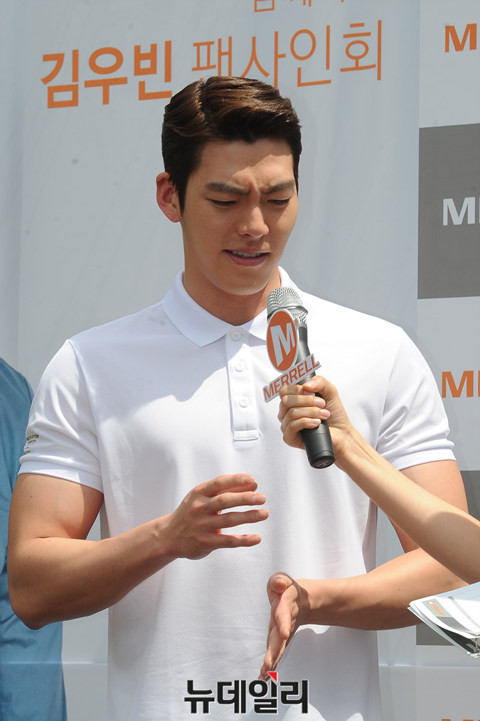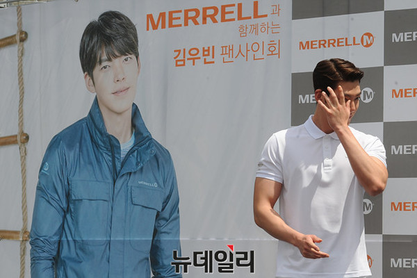 배우 김우빈이 20일 오후 영등포 롯데백화점에서 열린 아웃도어 캐주얼 브랜드 머렐 ‘김우빈 팬사인회’에 참석해 포즈를 취하고 있다.