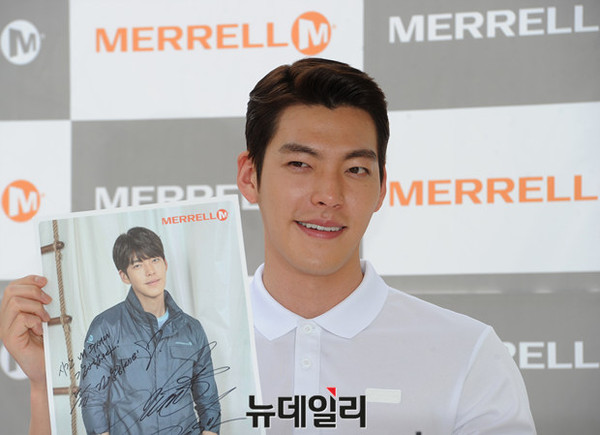 배우 김우빈이 20일 오후 영등포 롯데백화점에서 열린 아웃도어 캐주얼 브랜드 머렐 ‘김우빈 팬사인회’에 참석해 자신의 사인을 들고 포즈를 취하고 있다.