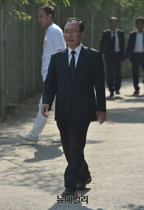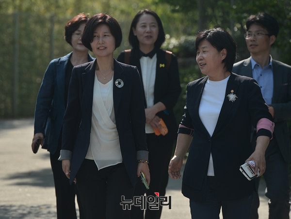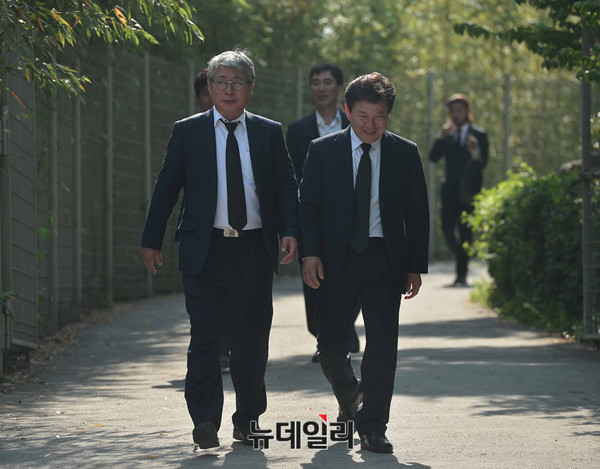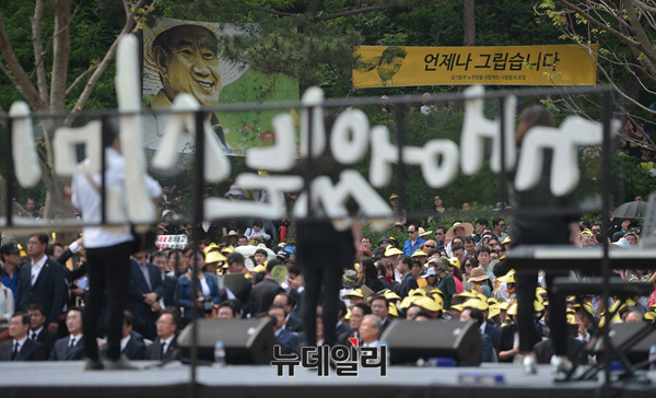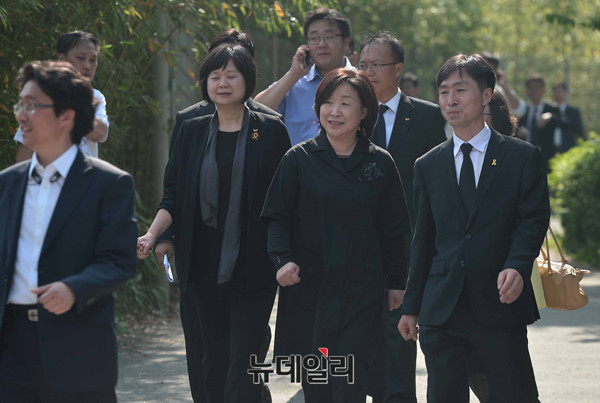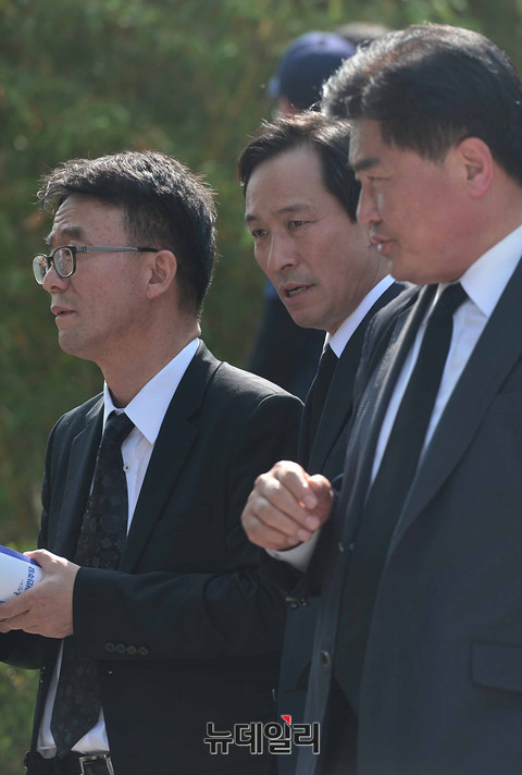 더불어민주당 김종인 비상대책위 대표와 지도부와 정의당 심상정대표와 노회찬 원내대표가 23일 오후 김해 봉하마을에서 열린 故노무현 전 대통령 7주기 추도식에 행사에 참석한 뒤 사택을 나서고 있다. 앞서 이들은 공식 추모행사를 마친 뒤 묘역을 찾아 헌화·분향을 했다. (경남 김해=뉴데일리 정상윤)