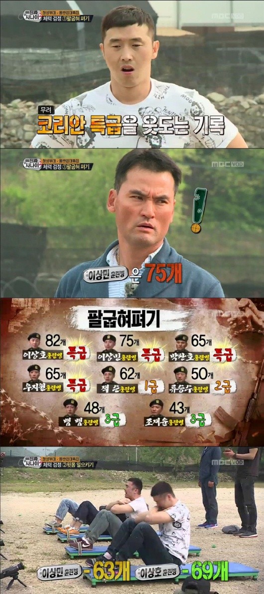 22일 MBC '진짜사나이' 동반입대특집에 출연한 '몸짱 개그맨' 이상호 이상민 쌍둥이 형제가 전직 국가대표 야구선수인 박찬호와, 전 국가대표 농구선수인 우지원, 펜싱 국가대표인 잭슨 등을 가뿐하게 따돌리고 체력테스트에서 '절대 지존'의 위치에 오른 것.