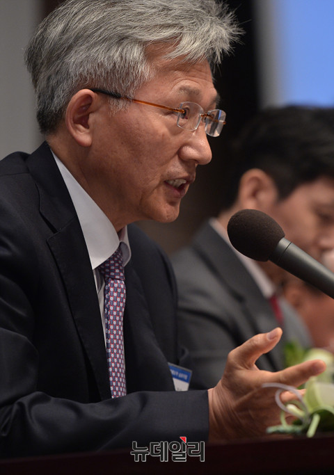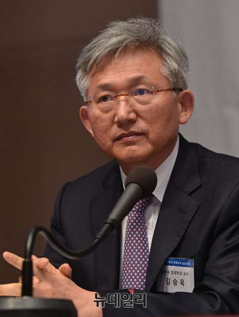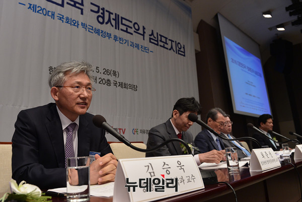 뉴데일리미디어그룹과 자유경제원이 26일 오후 한국프레스센터 국제회의장에서 '제20대 국회와 박근혜정부 후반기 과제'를 진단하는 '2016대한민국경제도약심포지엄'을 개최했다. 중앙대 김승욱 교수가 토론에 참석해 발언하고 있다.