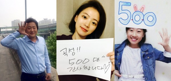 '종구' 역을 통해 강렬한 존재감을 발산한 곽도원은 손으로 500만을 표현하는 재치 넘치는 모습의 인증샷으로 눈길을 끈다. 목격자 '무명' 역의 천우희는 "곡성!! 500만 감사합니다"라고 전했다. 놀라운 연기를 선보인 '효진' 역의 김환희는 직접 쓴 '500' 숫자와 함께 활짝 웃는 귀여운 모습으로 기쁨을 드러냈다.