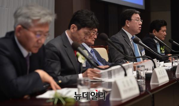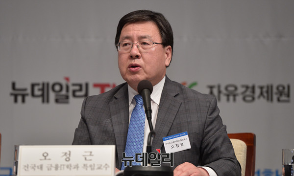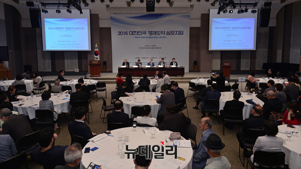 뉴데일리미디어그룹과 자유경제원이 26일 오후 한국프레스센터 국제회의장에서 '제20대 국회와 박근혜정부 후반기 과제'를 진단하는 '2016대한민국경제도약심포지엄'을 개최했다. 건국대 금융IT학과 특임교수가 토론에 참석해 발언하고 있다.