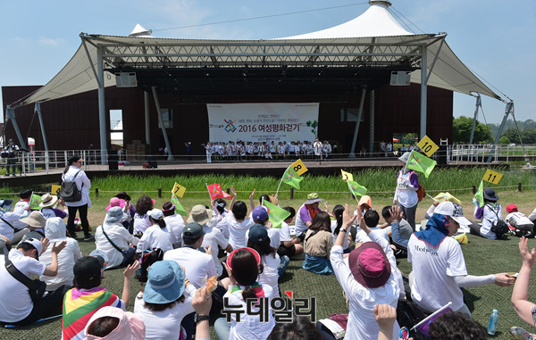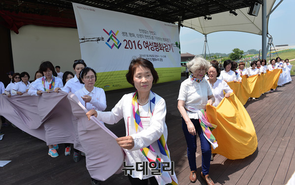 • 32개 여성단체로 구성된 '2016여성평화걷기조직위원회'가 28일 오전 경기 파주 임진각 일대에서 여성평화걷기를 개최했다. 이들은 임진각 철책로를 따라 약 6km를 걷고, 선언문낭독과 플래시몹을 진행했다.