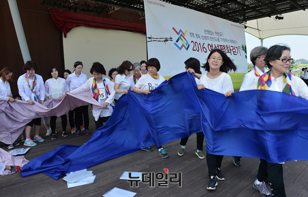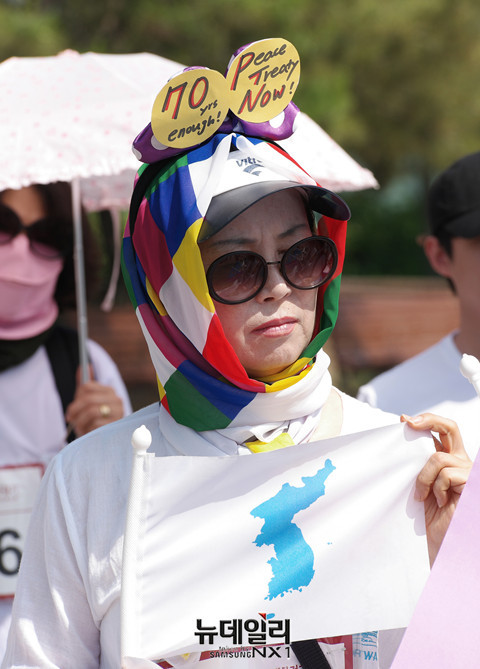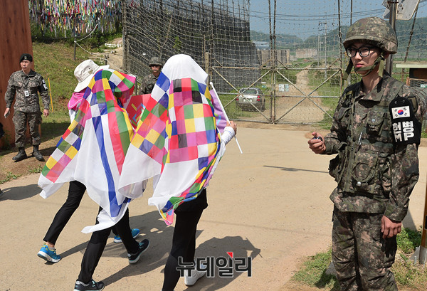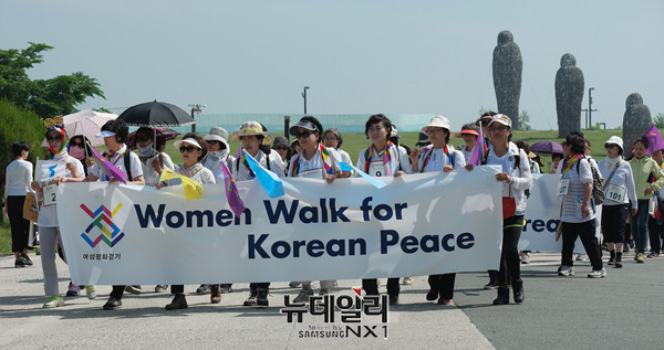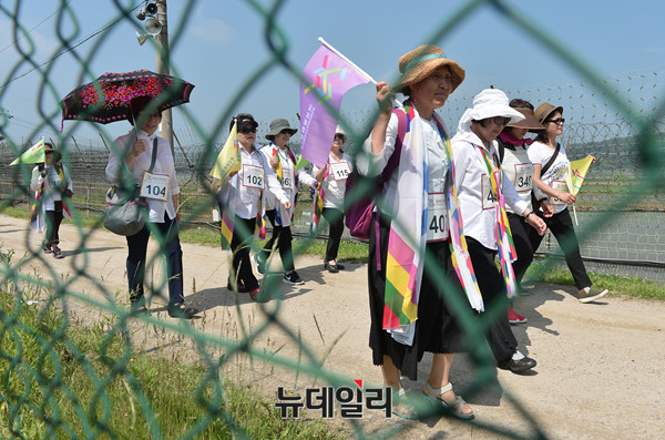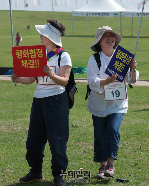 • 32개 여성단체로 구성된 '2016여성평화걷기조직위원회'가 28일 오전 경기 파주 임진각 일대에서 여성평화걷기를 개최했다. 이들은 임진각 철책로를 따라 약 6km를 걷고, 선언문낭독과 플래시몹을 진행했다.