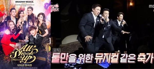 '무한도전' 웨딩싱어즈 축가 특집이 끝나자 뮤지컬 '올슉업'에 대한 관심이 뜨겁다.